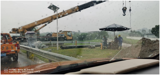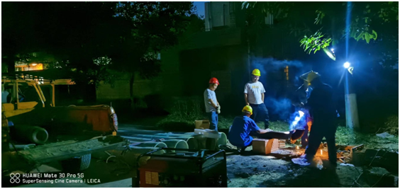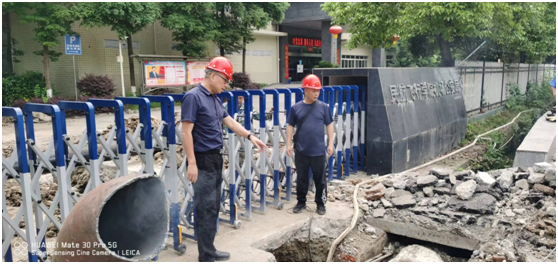 南和路段冒雨實(shí)施管網(wǎng)碰頭