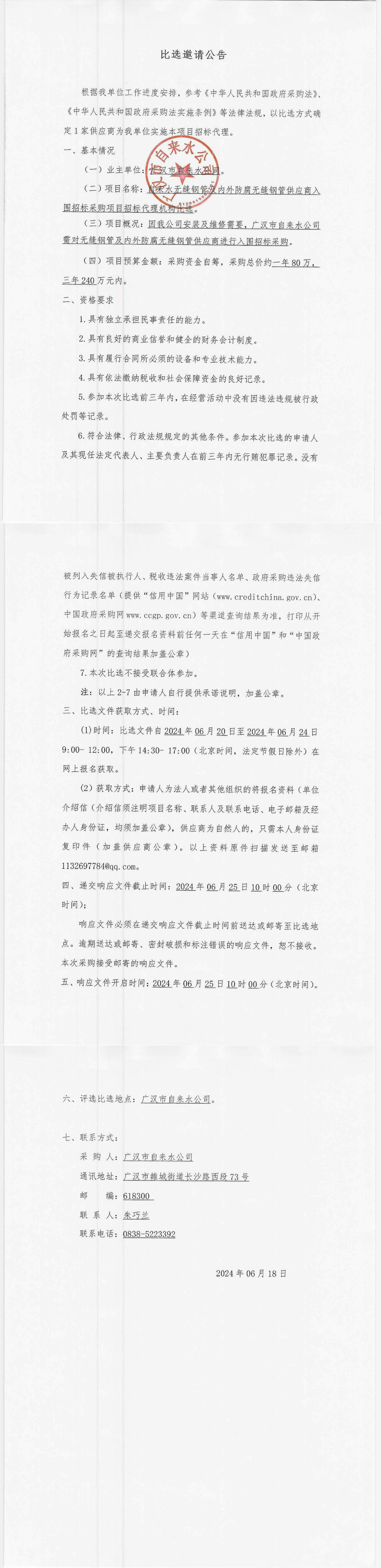 無(wú)縫鋼管代理機(jī)構(gòu)比選公告