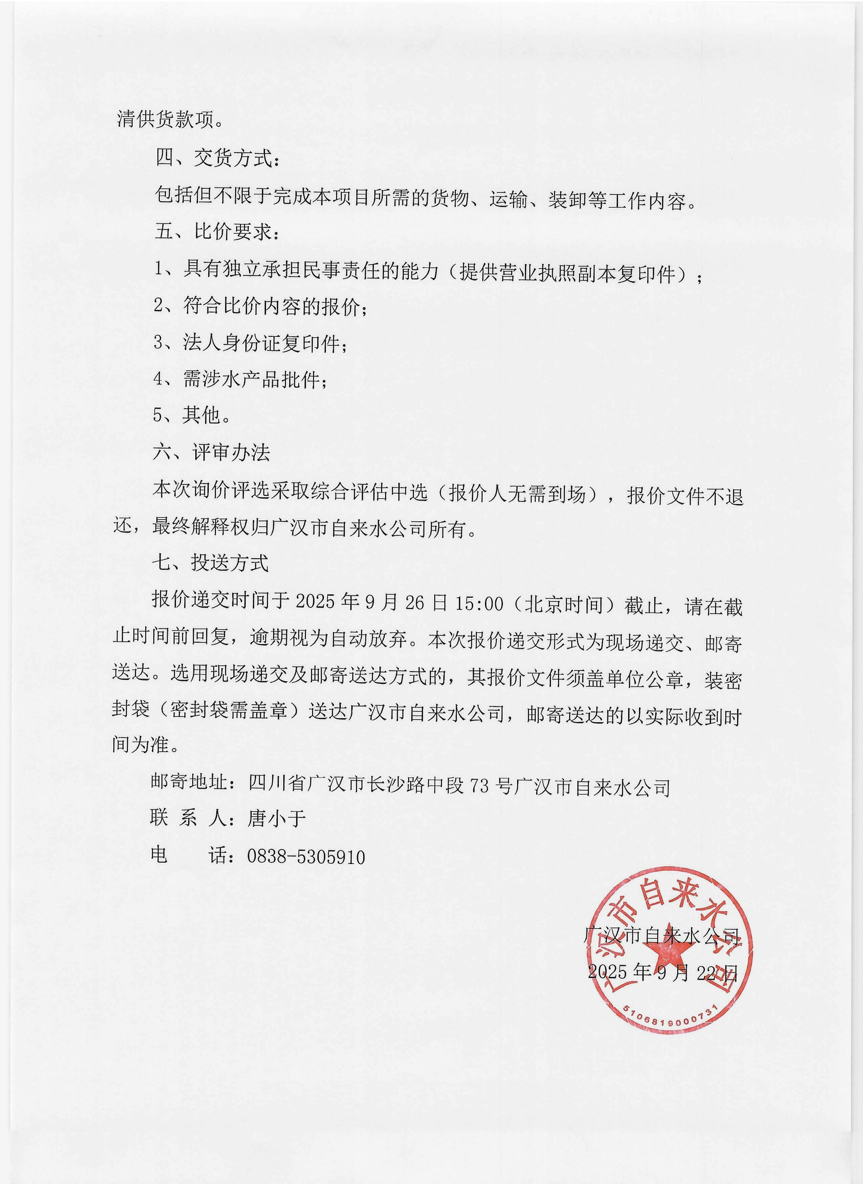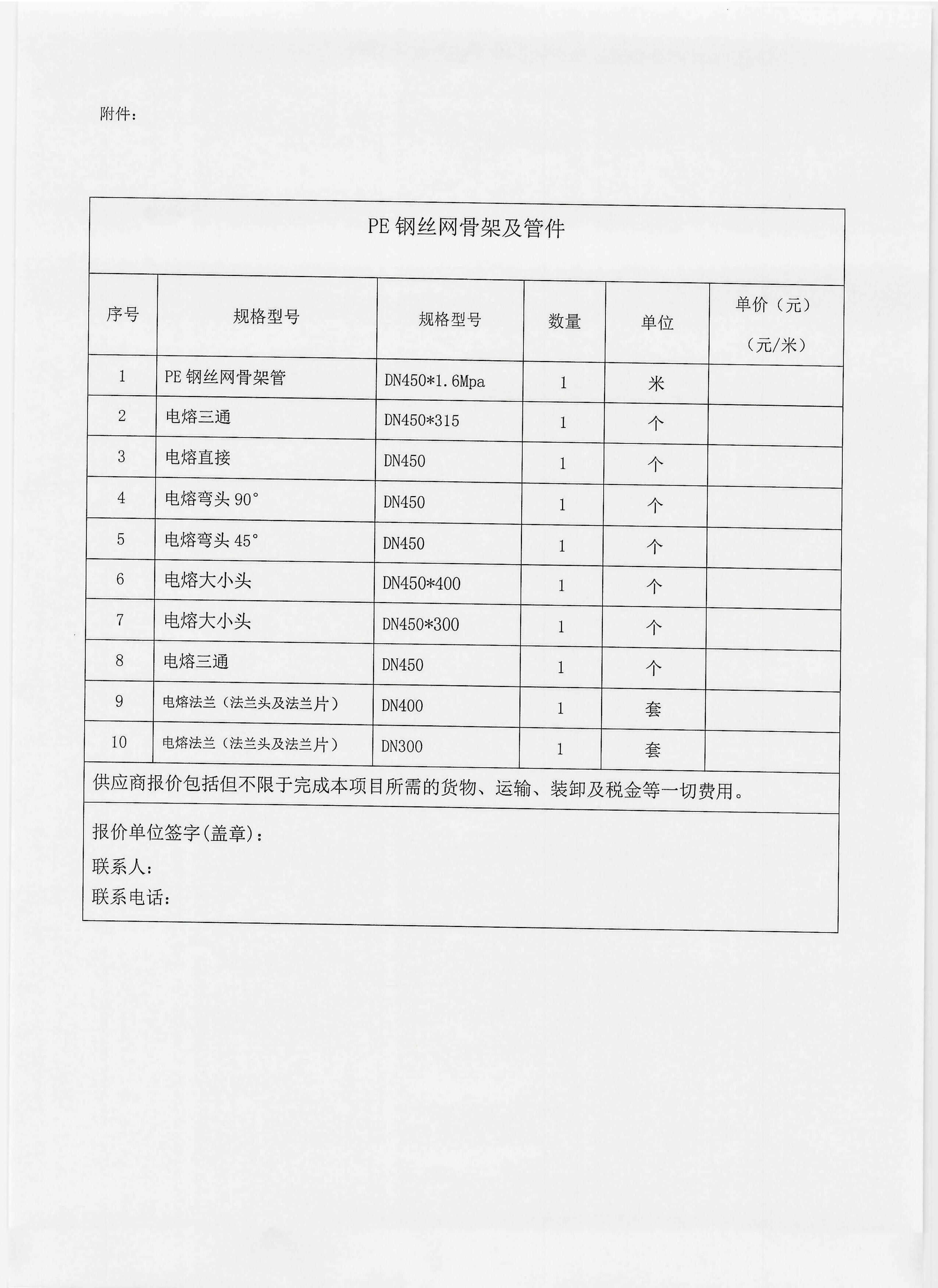 廣漢市自來水公司采購(gòu)PE鋼絲網(wǎng)骨架及管件項(xiàng)目詢價(jià)單
