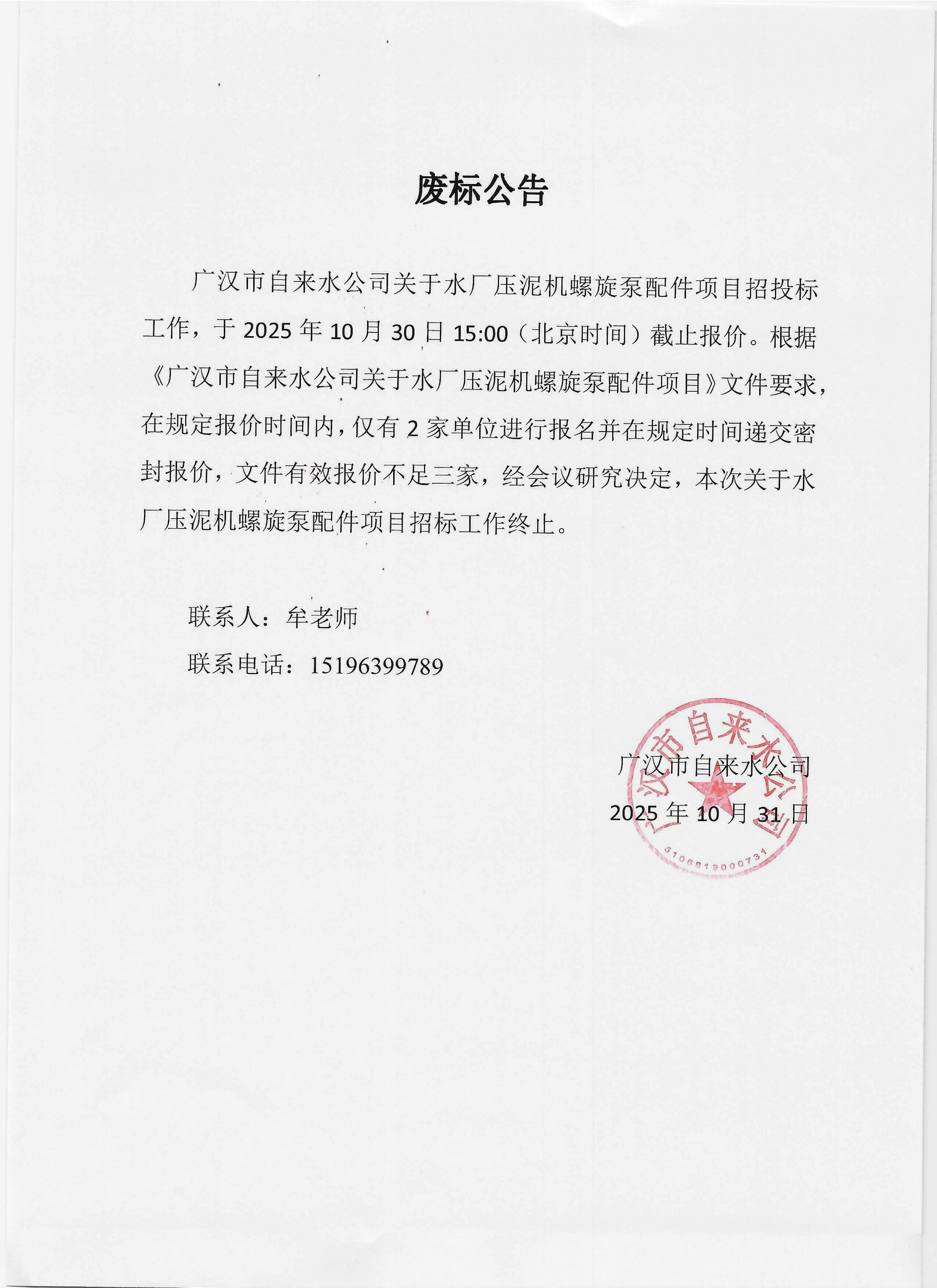 廣漢市自來(lái)水公司關(guān)于水廠壓泥機(jī)螺旋泵配件詢價(jià)項(xiàng)目