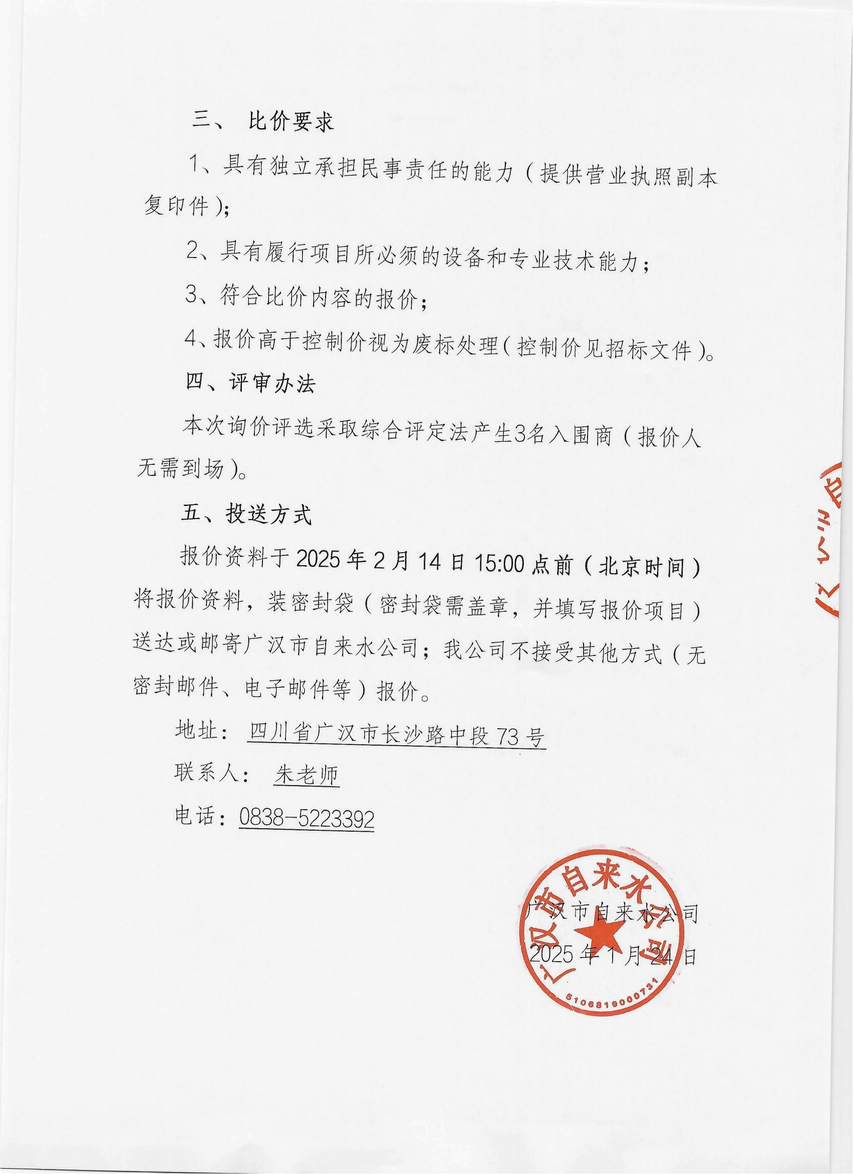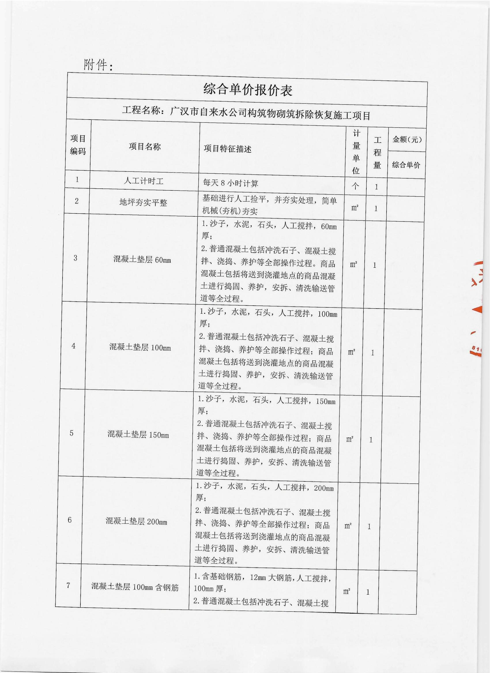 廣漢市自來水公司構(gòu)筑物砌筑拆除恢復(fù)施工項(xiàng)目詢價(jià)單(第二次)