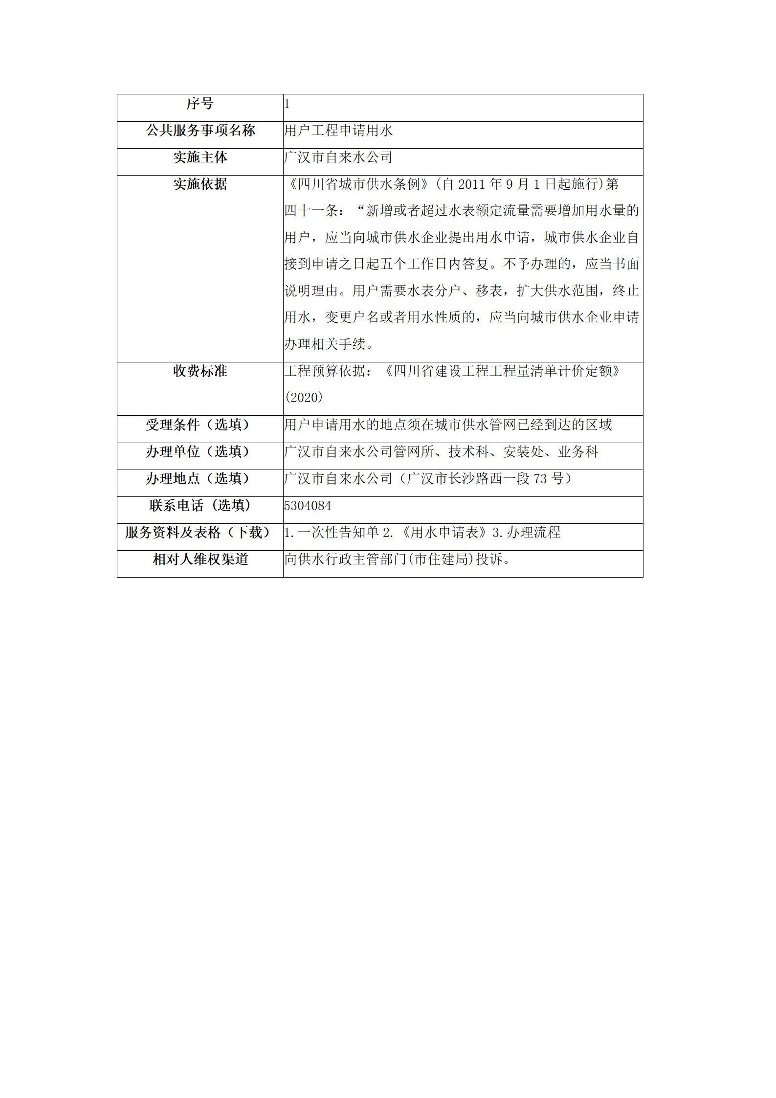 用戶工程申請(qǐng)用水