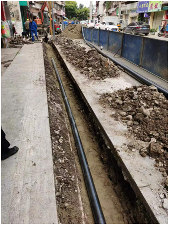 根據(jù)現(xiàn)場(chǎng)實(shí)際情況及施工方案要求該路段將更換PE110的供水管道約90米,需機(jī)械和人工破除人行道及瀝青路面、拆除閥門井等。由于該片區(qū)處鬧市區(qū)人口密集、車流量大、街道狹窄,附近還有兩所學(xué)校,這些都是施工過(guò)程中需要克服的困難。施工人員按要求放置施工圍欄、警示標(biāo)識(shí)等,確保交通安全,在施工中及時(shí)協(xié)調(diào)現(xiàn)場(chǎng),解決群眾訴求,保障工程平穩(wěn)有序推進(jìn),確保安全文明施工,高質(zhì)高效完成管網(wǎng)更新改造工作。