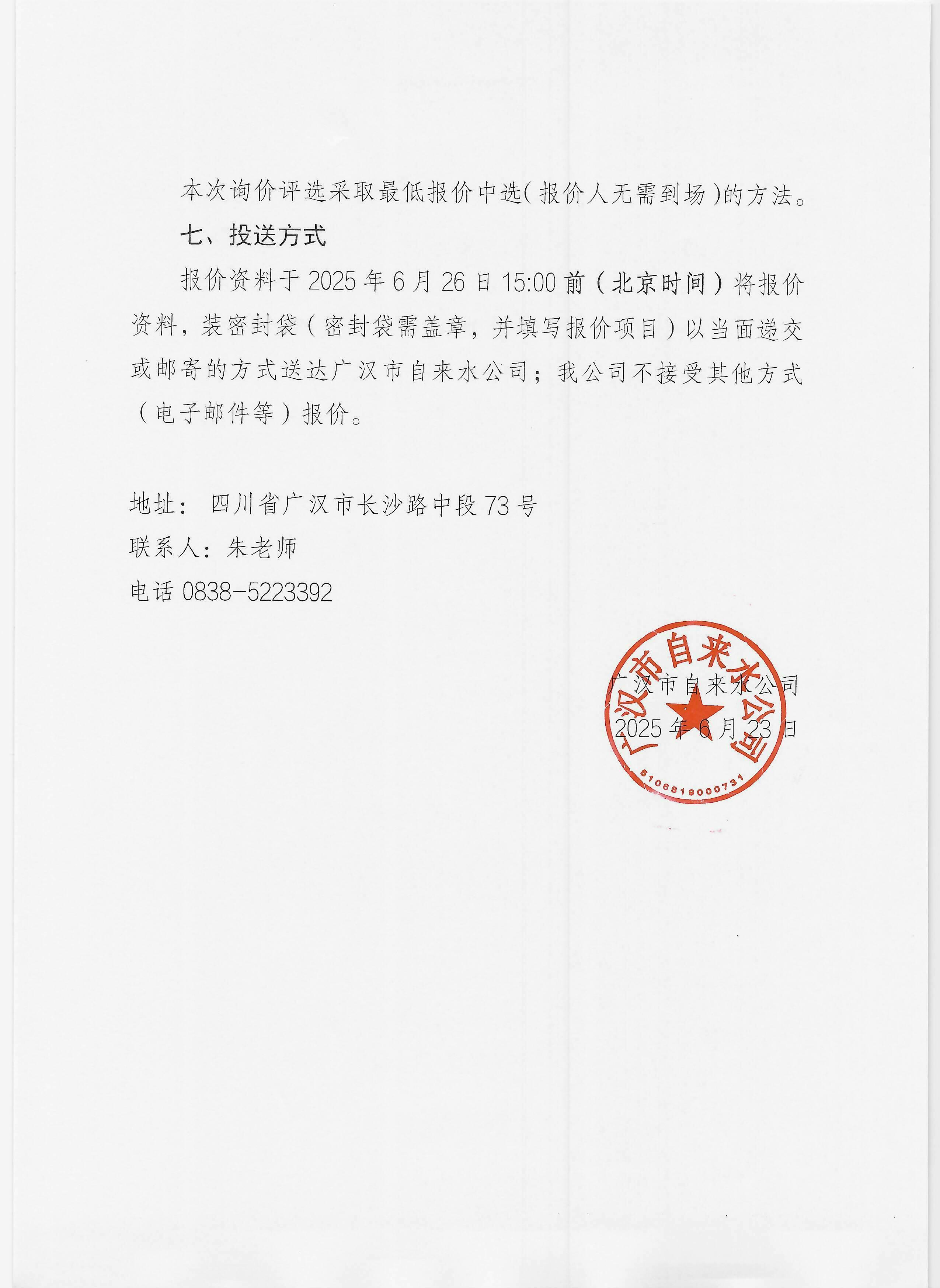 廣漢市自來(lái)水公司關(guān)于廣漢市自來(lái)水廠采購(gòu)消毒藥劑次氯酸鈉項(xiàng)目
