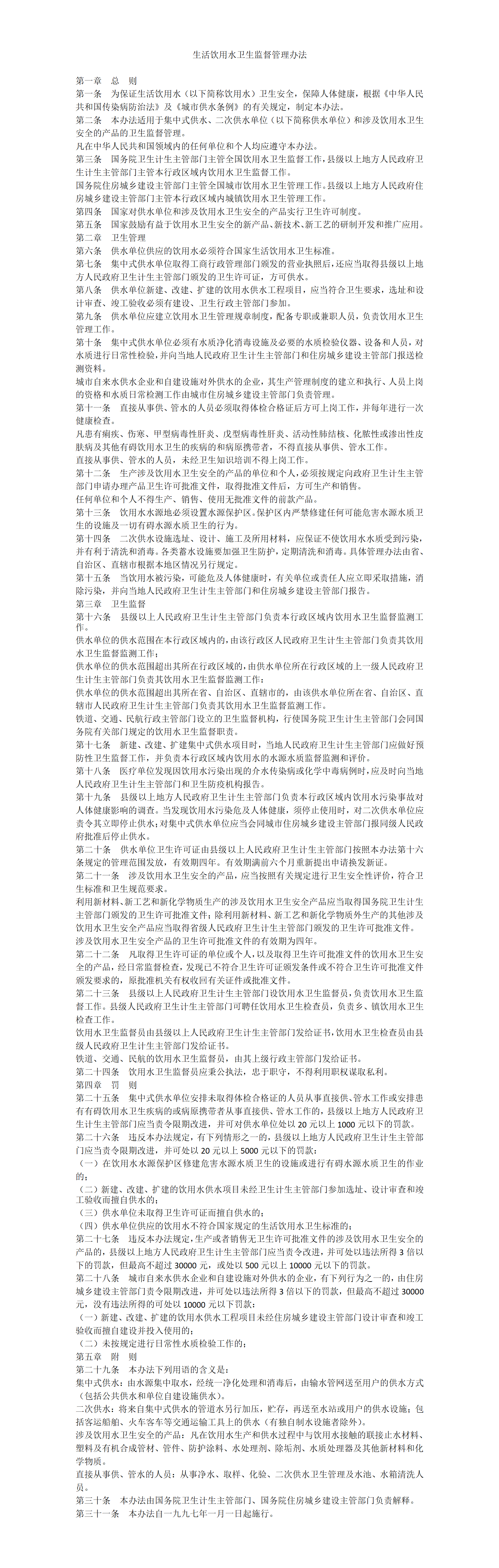 生活飲用水衛(wèi)生監(jiān)督管理辦法